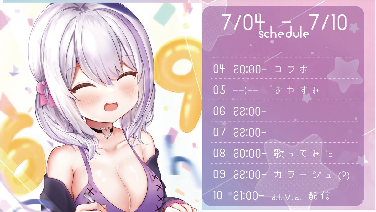 7/18 - 7/24 #ろくスケ --- YouTube✦bit.ly/3rC6NkT fanbox✦bit.ly/3k39lb7 マシュマロ✦bit.ly/2QJItk1 --- マ✦😈6️⃣ 配信✦#惡ノろっくおん 使ってもいいFA✦#ろく画 総合✦#惡ノろく #Vtuber