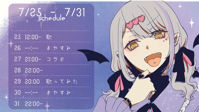 7/25 - 7/31 #ろくスケ --- YouTube✦bit.ly/3rC6NkT fanbox✦bit.ly/3k39lb7 マシュマロ✦bit.ly/2QJItk1 --- マ✦😈6️⃣ 配信✦#惡ノろっくおん 使ってもいいFA✦#ろく画 総合✦#惡ノろく #Vtuber