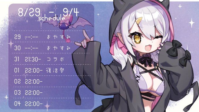 8/29 - 9/4 #ろくスケ --- YouTube✦bit.ly/3rC6NkT fanbox✦bit.ly/3k39lb7 マシュマロ✦bit.ly/2QJItk1 --- マ✦😈6️⃣ 配信✦#惡ノろっくおん 使ってもいいFA✦#ろく画 総合✦#惡ノろく #Vtuber