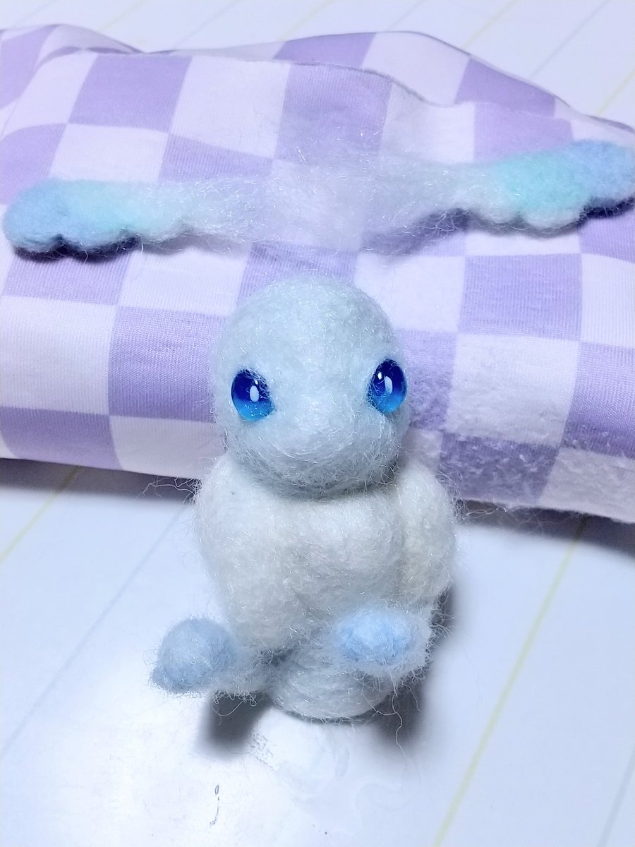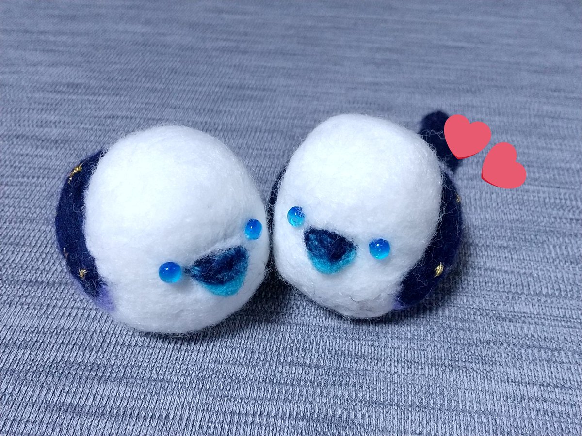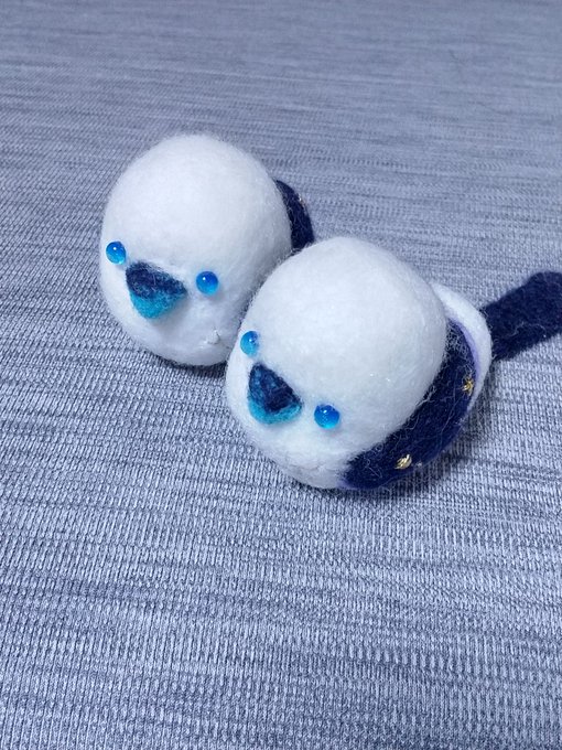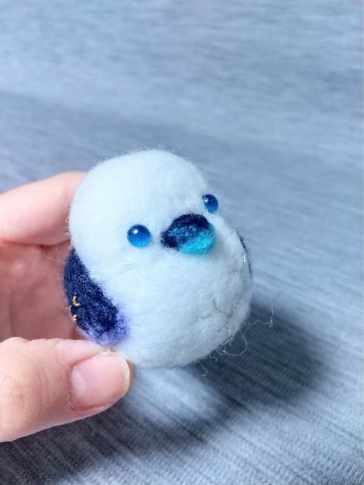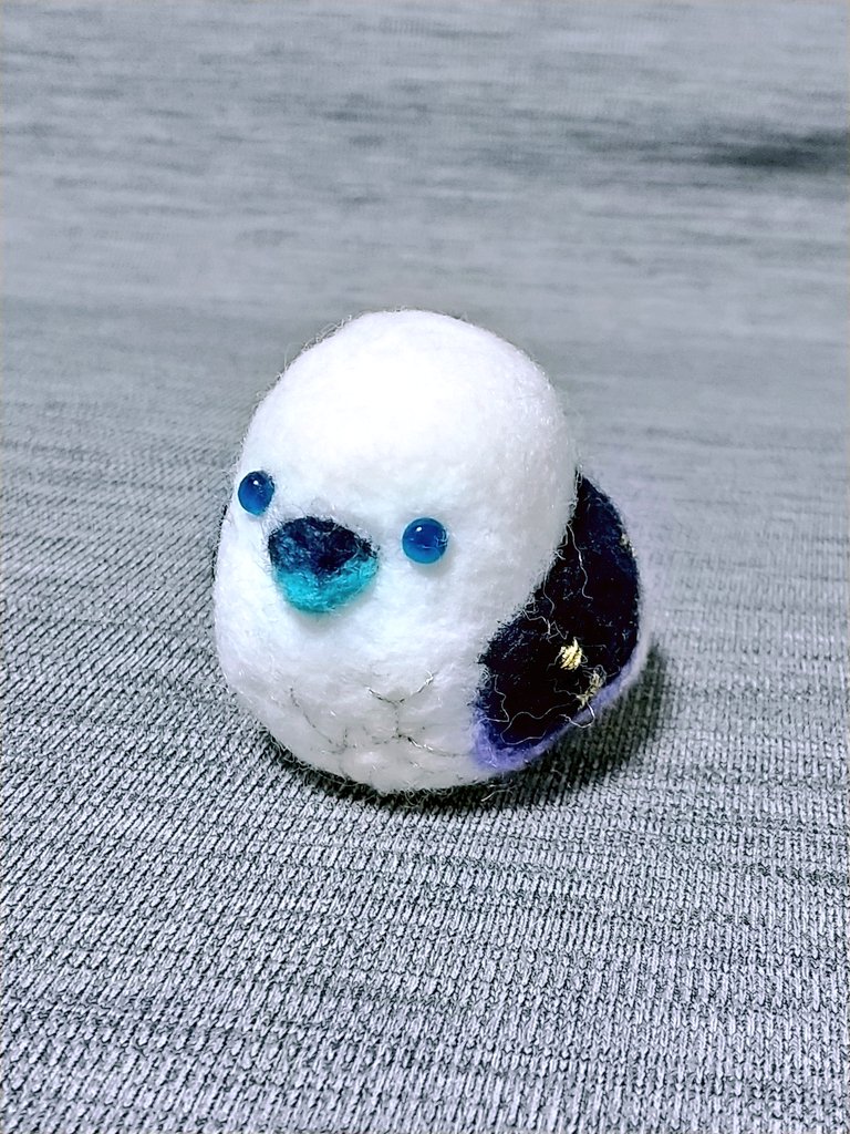 おはようございます🌃 ウールパニエ、朝活中です。 今日はジュヒョウエナガの片羽とお腹に星と雪の刺繍を入れていました。 目もサイズを小さめにして、お顔のバランス調整中です。 #想創幻獣 #羊毛フェルト #サッポロモノヴィレッジ2022