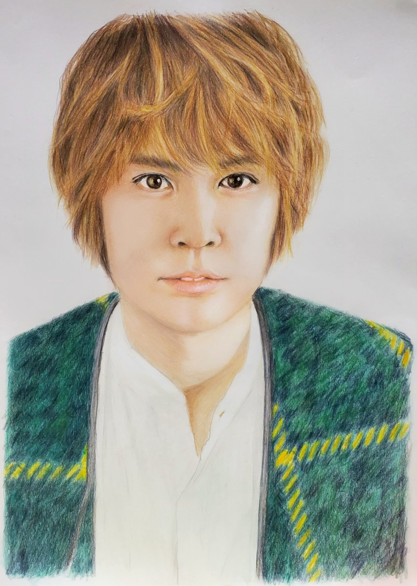 本日の浦井画 ちゅるちゅる美肌✨けんじさん💕完成しました🙌 お洋服の柄が雑なのは大目に見てくださいませ😅 さあ‼️これで金曜日にシアタートラムに行けます🚄 戯曲、もう一度読んどこっ📖 至近距離の浦井くんは1年ぶり💕 きゃ~💦ドキドキです💓 #色鉛筆画 #浦井健治 #愛するとき死するとき