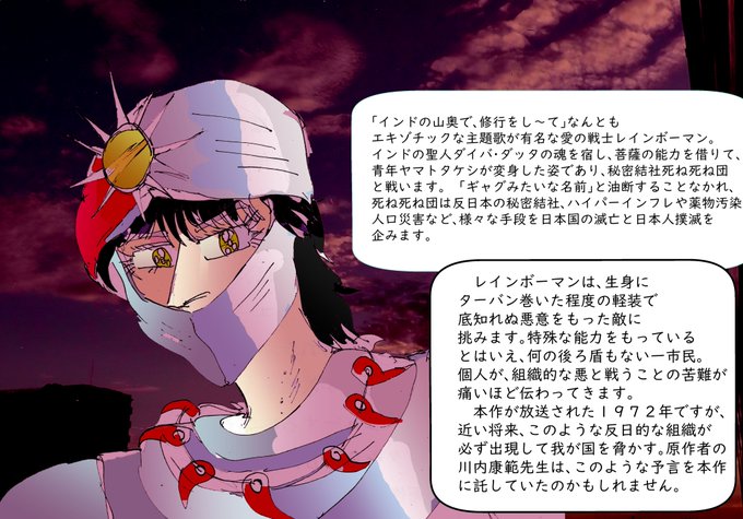 #ArtistOnTwitte $picrt #illustrations #drawing #レインボーマン #死ね死ね団 #川内康範 #ダッシュ1 #月の化身 #愛の戦士レインボーマン #Rainbowman 格差の象徴とされる高級ブランド品、そこから得られる源泉の恐るべき用途。おそるべき事実が半世紀前の特撮番組で語られていました。