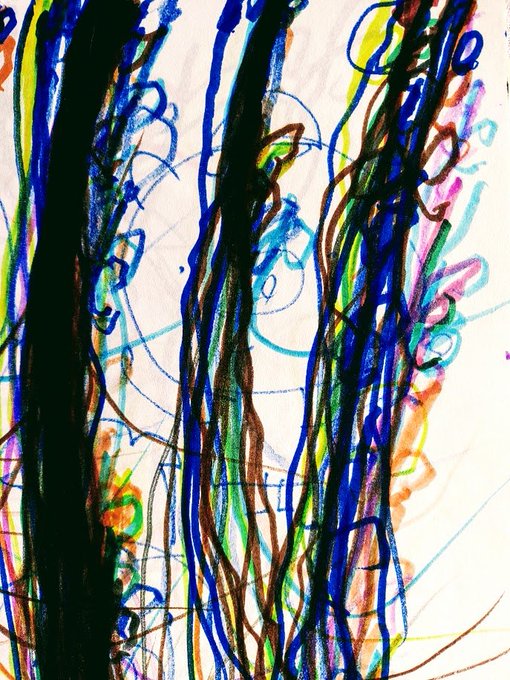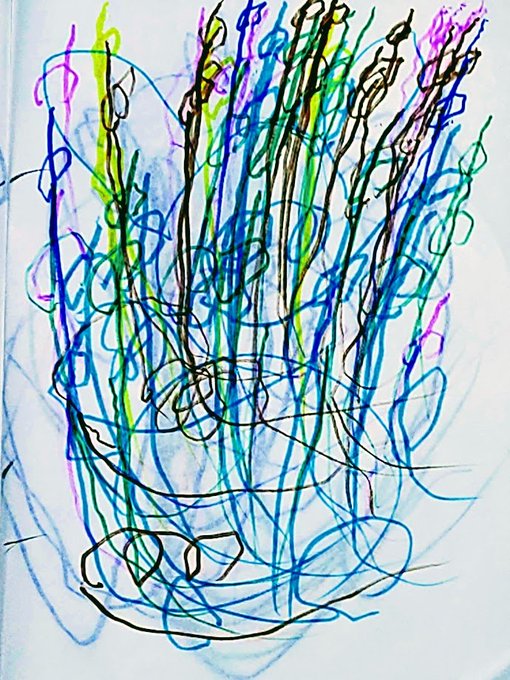 #愛の礫 #今月描いた絵を晒そう #寝る前の耕也とのおはなし #耕也の絵 №368 じゃあね№258 私:じゃあね。広ーいところにある黄色いものなーんだ?(お父さん発案) 耕:とうめい 私:わぁ。いい答え―。きいろいものを遠ーくから見たら透明に見えるからね(ってそうなのか?) あたりあたり大当たり