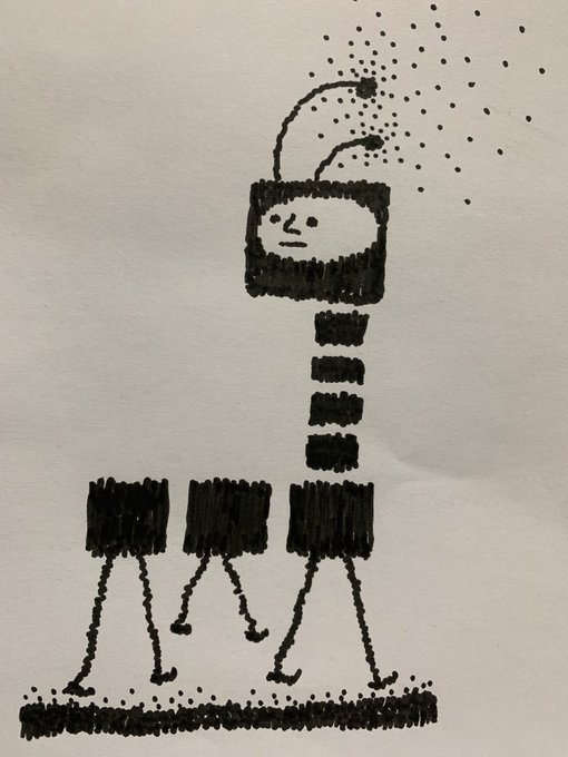 #愛の礫 #今月描いた絵を晒そう #寝る前の耕也とのおはなし #耕也の絵 №365 じゃあね№255 私:じゃあね。お水を掛けられるといい気持ちになるものはなーんだ? 耕:カレーライス🍛 私:そうだねー。♪おくちがろろろ やけるよ はぁー♬だから、カレーライスはいつもお水が欲しいよね。