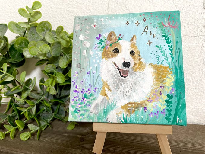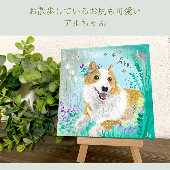 オリジナル作品をそのままに、ペットさんの似顔絵オーダーを頂きました⚘⠜ 背景はパステルカラーで明るい感じにꕤ あるちゃんと、お友達の猫ちゃんも一緒にみんな笑顔です(*´ `) #ペット似顔絵オーダー #ペット似顔絵 #愛犬イラスト