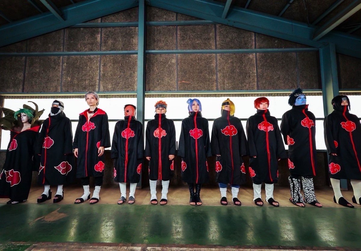 ⚠︎コスプレ/cosplay NARUTO - ナルト- 暁(サソリ/イタチ/鬼鮫) ーーーーーーーーーーーーーーーー 仲良く忍々ポーズ☁️☁️☁️ オフショだけどとても好き🌈 背の順なのもとても良き。 #愛知暁併せ1023