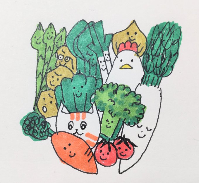 おはようございます!! #愛菜の日 みんなで野菜の変身ごっこだよ!! 今日も素適な火曜日を〜🤗 #絵描きさんと繋がりたい #みんなで楽しむTwitter展覧会 #イラスト #油性ペン #マッキー