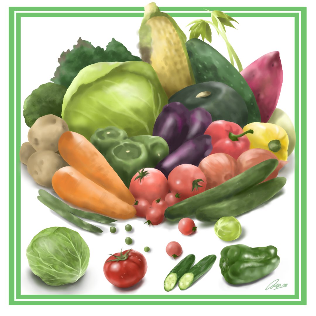 おはようございます!! (#愛菜の日) ことら、ニワちゃん、何種類の野菜に 紛れてるでしょうか??😁 今日も素敵な月曜日を〜😆 #イラスト好きな人と繋がりたい #絵描きさんと繋がりたい #みんなで楽しむTwitter展覧会 #イラスト