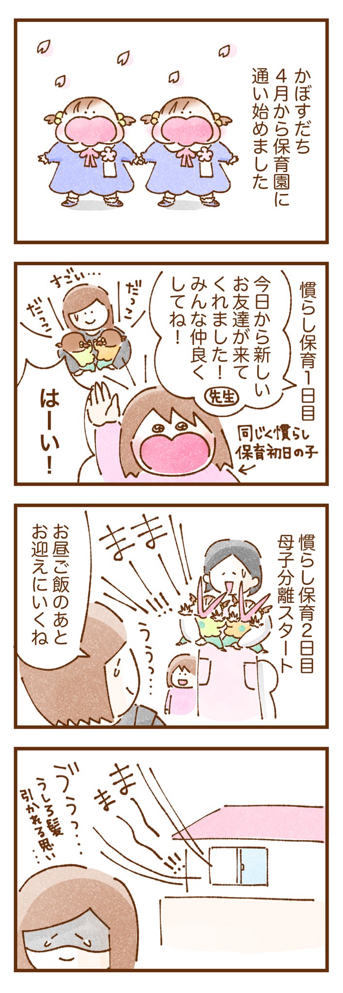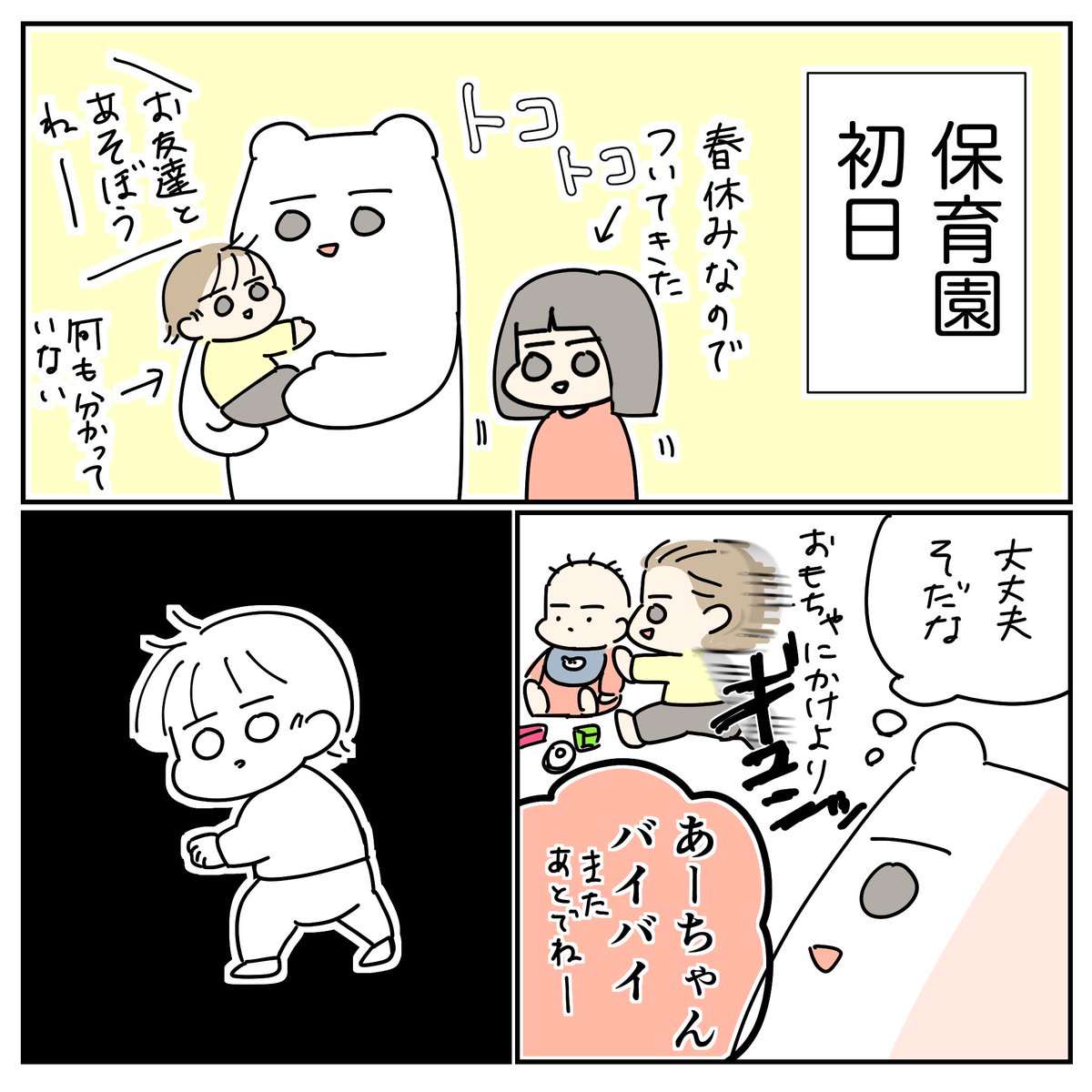 昨日は保育園初日でした ギャン泣き2時間耐久レース お疲れ様🥺 先生ありがとう… #漫画が読めるハッシュタグ #マンガが読めるハッシュタグ #育児日記 #コミックエッセイ #子育て #慣らし保育 #声にならない