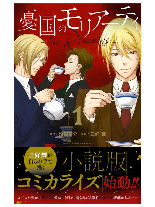 『憂国のモリアーティ -The Remains-』コミックス1巻、明日発売です。 表紙のウィリアムの顔も小説版のものからこっそり描き直してます。 お見掛けの際はよろしくお願いします! #憂国のモリアーティ twitter.com/344_hikaru/sta…