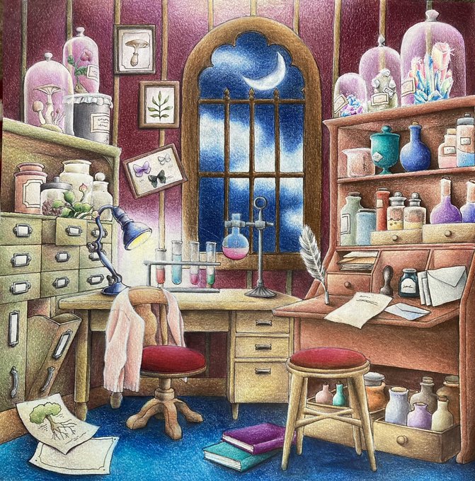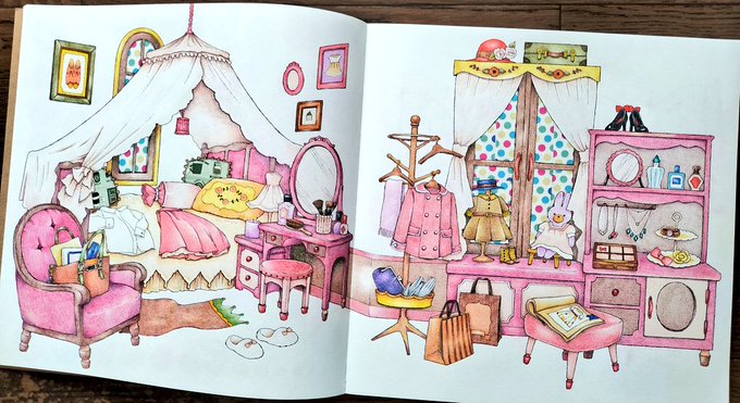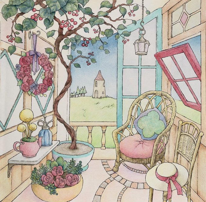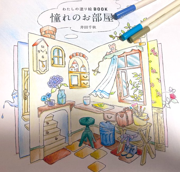 @dacchi_tt #憧れのお部屋 より。めっちゃクリスマスカラーにしちゃった(*´-`) #井田千秋 #chiakiida #大人の塗り絵 #大人のぬりえ #色鉛筆 #prismacolor #polychromos はぁ〜楽しかった❣️
