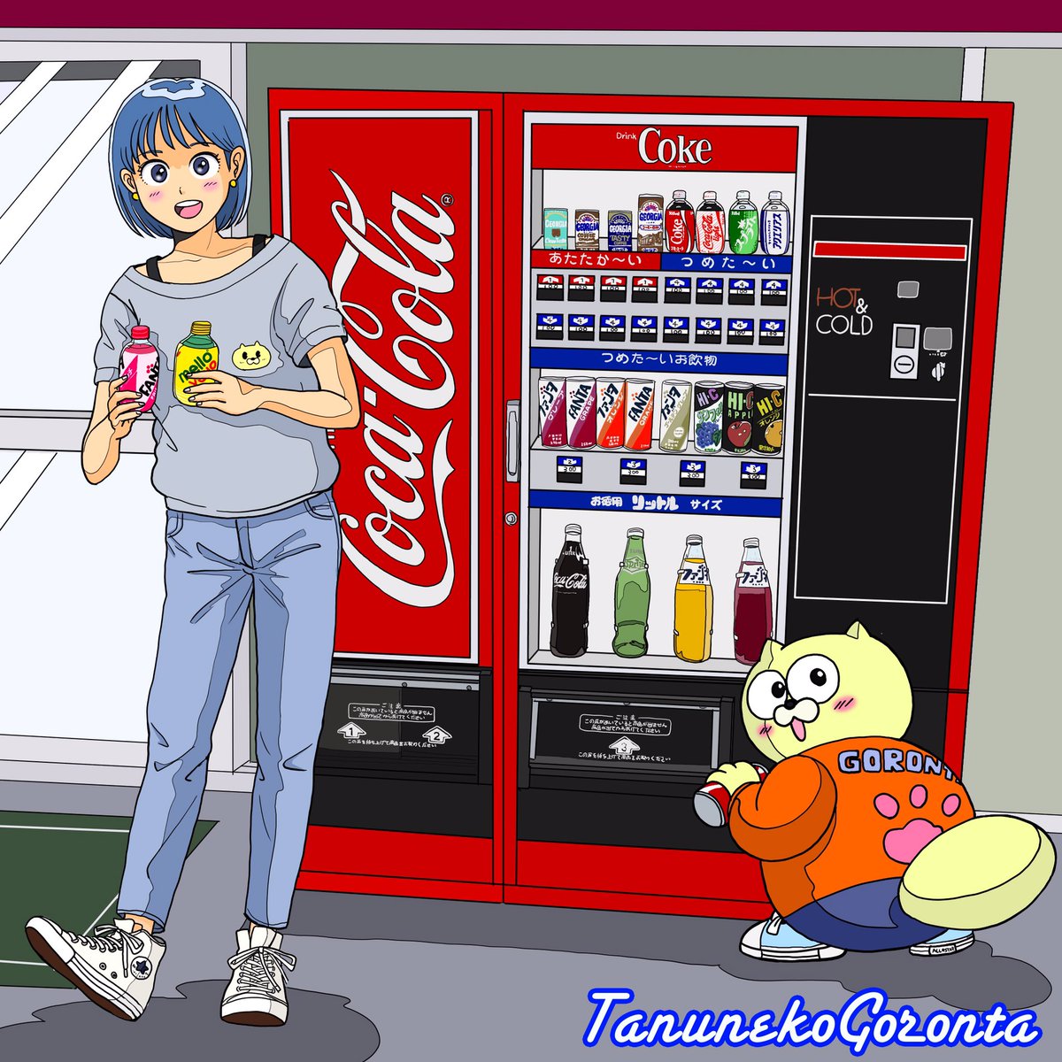 水分たくさんとって、熱中症対策しましょうニャン⁽⁽ ◟(∗ ˊωˋ ∗)◞ ⁾⁾ 今日もお疲れさまですにゃ! #猫好きさんと繋がりたい #車好きな人と繋がりたい #イラスト好きさんと繋がりたい #昭和 #80年代 #昭和レトロ #懐かしい自販機 #旧車 #コカコーラ #絵描きさんと繋がりたい