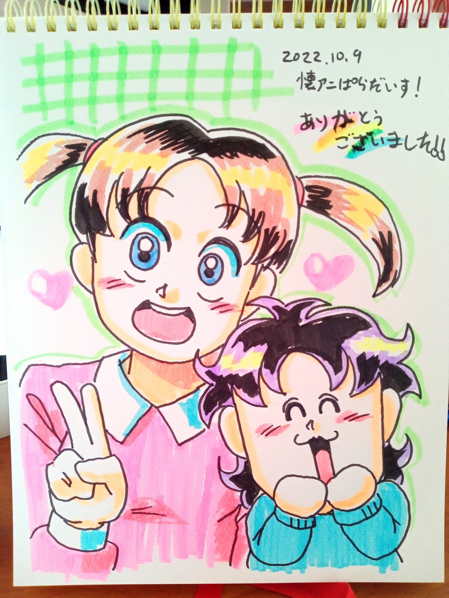 とっぷりんさん(@nico0748)お待たせしました! 一堂零ちゃん&一堂霧ちゃん兄妹です~🌷 おおっと、字が滲んでしまった💦 可愛く描けたでしょうか?☺️ #エアスケブ まだまだ募集中! #懐アニぱらだいす twitter.com/tokkurimokiru/…