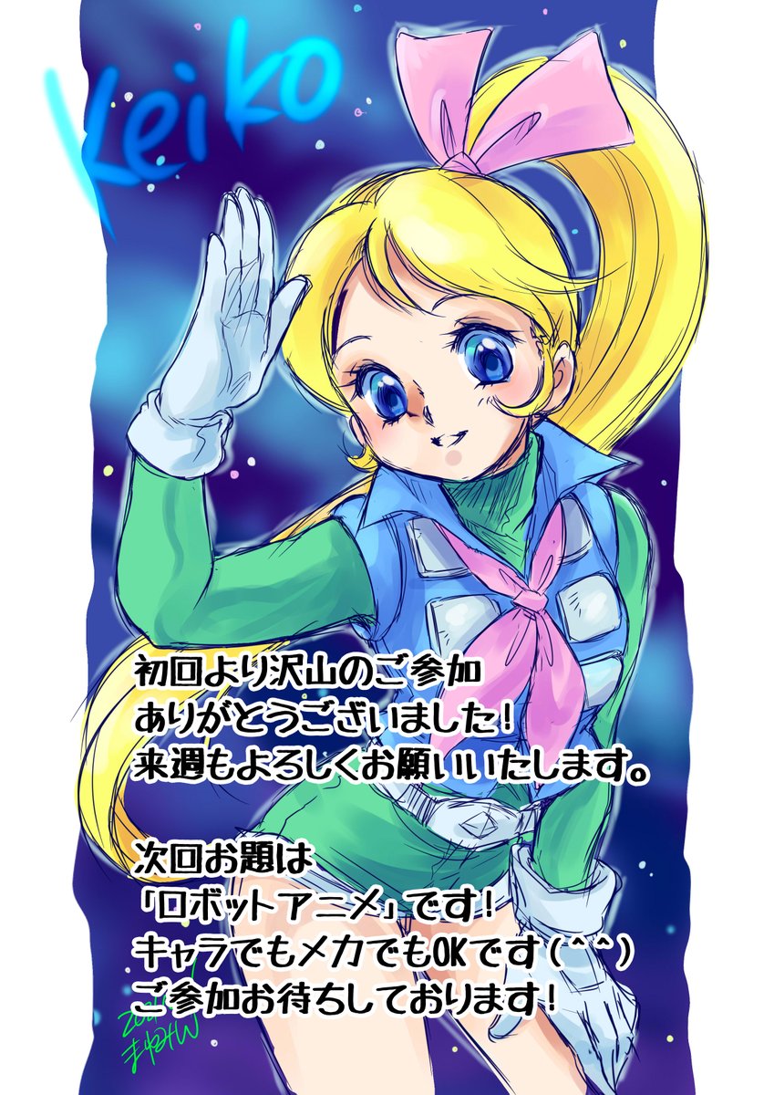 懐アニオンリー同人イベント開催記念 懐アニワンウィークドローイング 第一回参加ありがとうございました! 次回もよろしくお願いいたします 第2回 お題【ロボットアニメ】 締切4/30(土)23時 締切後RTさせて頂きます ★以下タグをつけてご参加ください #懐アニワンドロ #懐アニワンドロ20220430