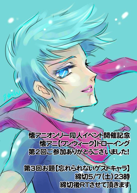 懐アニオンリー同人イベント開催記念 懐アニ【ワンウィーク】ドローイング 第2回ご参加ありがとうございました! 第3回 お題【忘れられないゲストキャラ】 締切5/7(土)23時 締切後RTさせて頂きます ★以下タグ両方をつけてご参加ください #懐アニワンドロ #懐アニワンドロ20220507