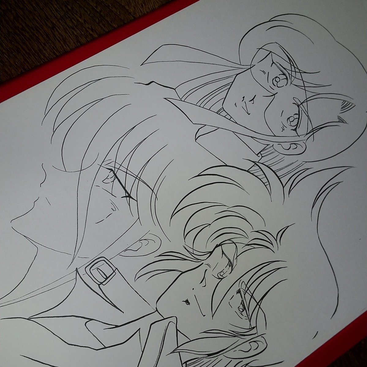 家事やら作業してたら、CSで「うる星やつら」の劇場版&OVA一挙をやっていたので…! 下描きなし一発描きですけど_(┐「ε:)_ 因幡くんと、スケバン三人組。シリーズの中で印象深いゲストキャラというか、好きなゲストキャラ。因幡くんはサブキャラ扱? #懐アニワンドロ #懐アニワンドロ20220507