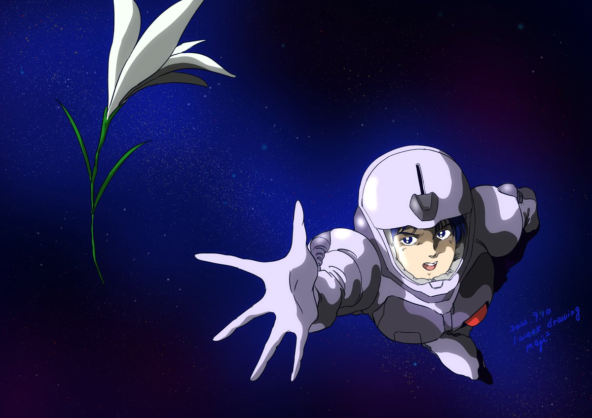 懐アニオンリー同人イベント開催記念 懐アニ【ワンウィーク】ドローイング 第21回お題【花】 機動戦士ガンダムF91のラストシーンは何度観ても 鳥肌モノです #懐アニワンドロ #懐アニワンドロ20220910
