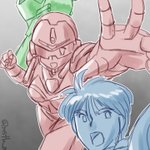 #懐アニワンドロ #懐アニワンドロ20221008 お題【最終回】という事で、 #機甲戦記ドラグナー 第48話「大宇宙(おおぞら)の凱歌」より、戦いを終えて微笑む主人公の #マイヨ・プラート とヒロインの #ミン大尉 です。え?主人公はケーンでヒロインはリンダ?誰でしたっけソレ? #リー・スー・ミン
