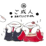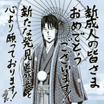1月9日「成人の日」。新成人の皆さま、おめでとうございます💐そうじゃない人も、きっと何かのおめでとう✨✨みんなに花束です💐 #成人の日 #おめでとうございます #花束贈呈 #イラスト #なごみ創作家まっちゃん