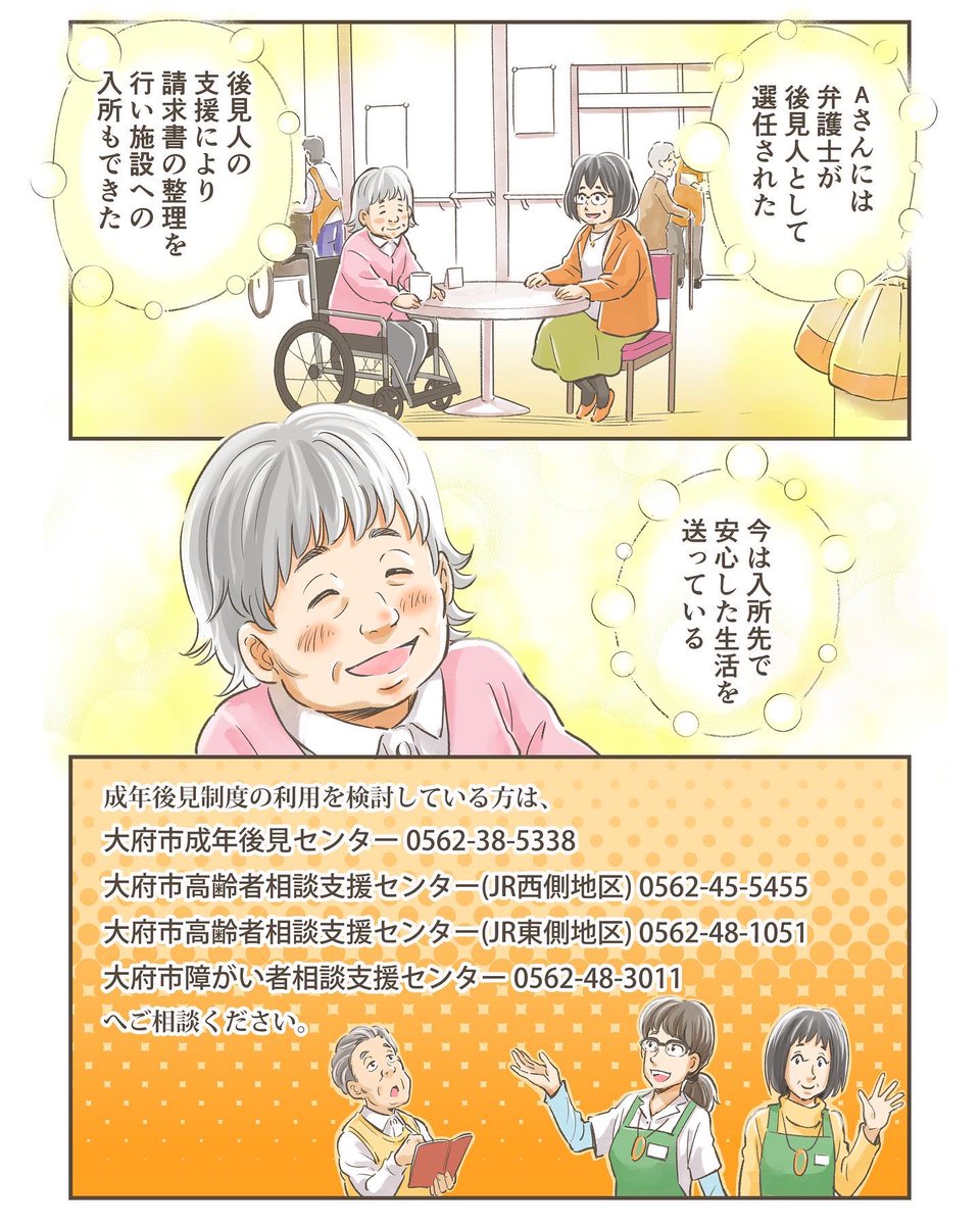 「成年後見制度」についてのマンガを描かせて頂きました。 自分も描きながら、とても勉強になりました。 是非ともご覧ください🙏 マンガ 成年後見制度ってどんな制度!? city.obu.aichi.jp/_res/projects/… 愛知県大府市”成年後見制度”HP city.obu.aichi.jp/sodan/1022971.… #成年後見制度 #愛知県大府市