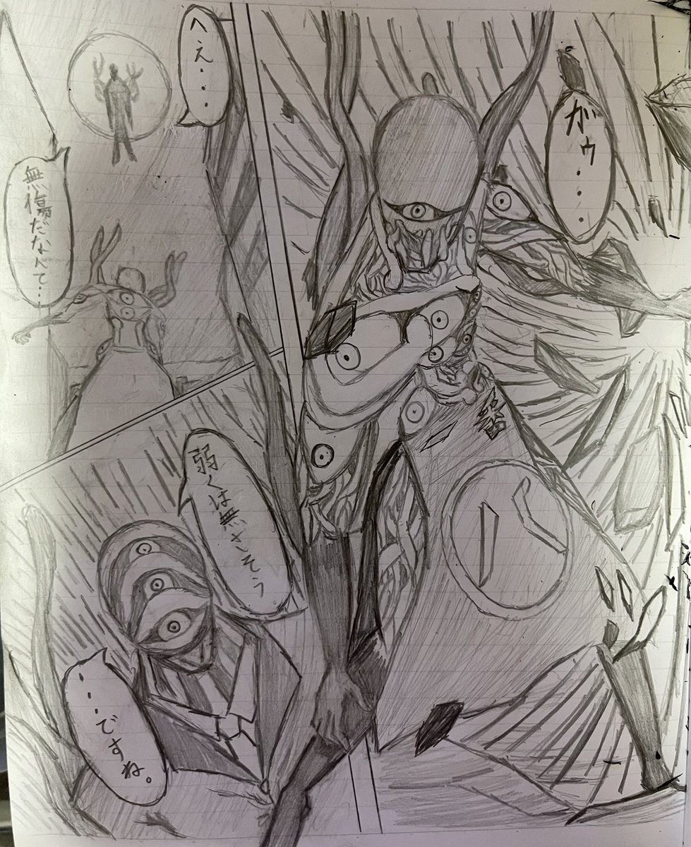 まだ漫画は描いていませんが、前の投稿で紹介した「寄生体:A-3」のイメージはこんな感じです。 イラスト左下のスーツ姿の戦闘相手についてはまた後日紹介します。 #イラスト #我らがヴィランアカデミア