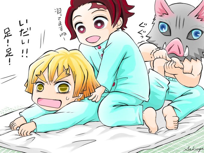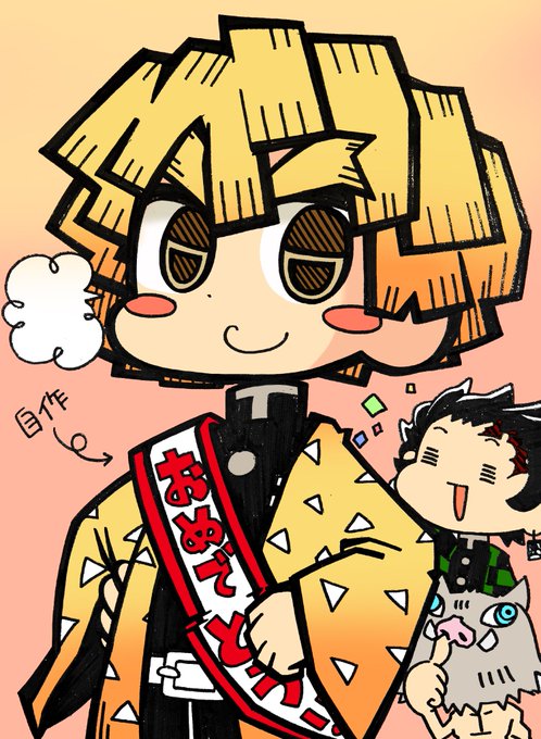 #我妻善逸誕生祭2022 #我妻善逸誕生日2022 誕生日なので🎴🐗にマッサージしてもらってる⚡ 皆様の誕生日イラスト素敵✨私も素敵イラスト描くぞ と思って描いたの・・・素敵どこいったw