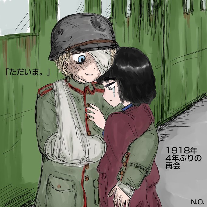 【4コマ漫画「クリスマスにまた!」の続き】 4年後(1918年)のクリスマス前に再会した2人(第一次世界大戦は1914年の夏から1918年の冬まで約4年間続きました) #イラスト #漫画 #漫画が読めるハッシュタグ #世界史 #第一次世界大戦 #戦争 #クリスマス twitter.com/enuo_manga/s…