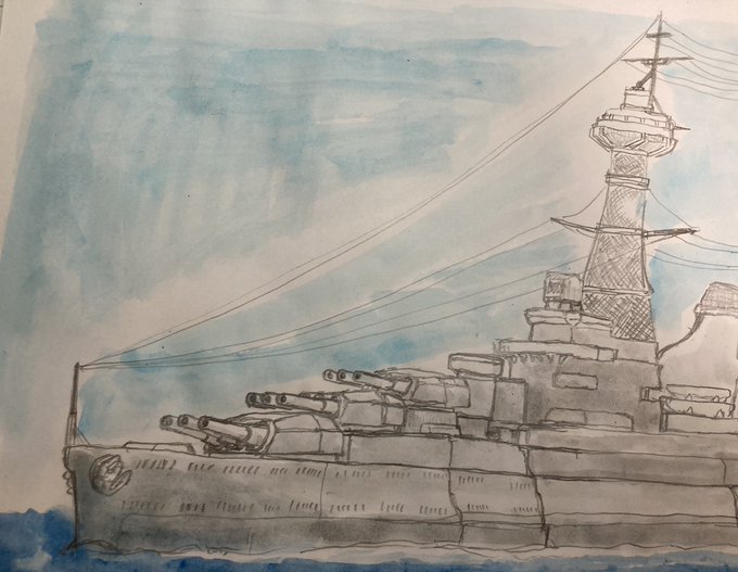 「八島」が巨大過ぎて表紙にうまく収まらないため、タイトル置いたりトリミングされると戦艦全体のデザインが伝わりにくい。 とにかくデカイんです。 #羅門祐人 #仮想戦記 #架空戦記 #架空戦艦 #戦艦 #ヴィクトリーノベルス #イラスト #イラストレーション #illustration