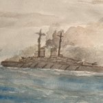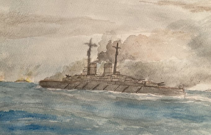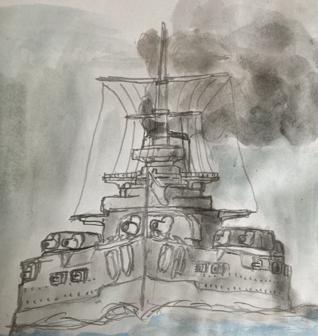 イラスト制作途中のデータ。 「砲撃」描画前の「八島」。 こちらのほうが全体デザインがより伝わるだろう。しかしそれでも広角を強くしないと画面に収まりきらなかった。 #羅門祐人 #仮想戦記 #架空戦記 #架空戦艦 #戦艦 #ヴィクトリーノベルス #イラスト #イラストレーション #illustration