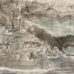 ※Tumblr投稿がうまく連携されないので改めて投稿。🙏 カバーイラスト描きました。 『死闘!孤島防衛戦 -ミッドウェー要塞1941(下)』 (吉田親司著/電波社) #吉田親司 #仮想戦記 #架空戦記 #戦艦 #ヴィクトリーノベルス #イラスト #イラストレーション #illustration