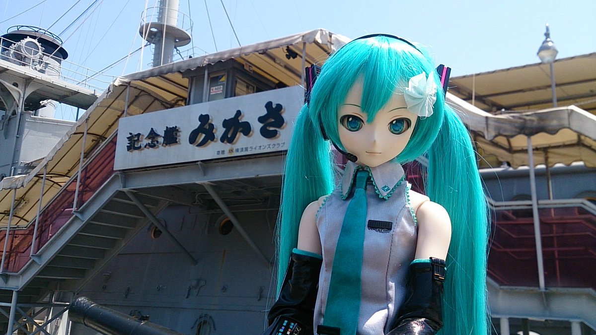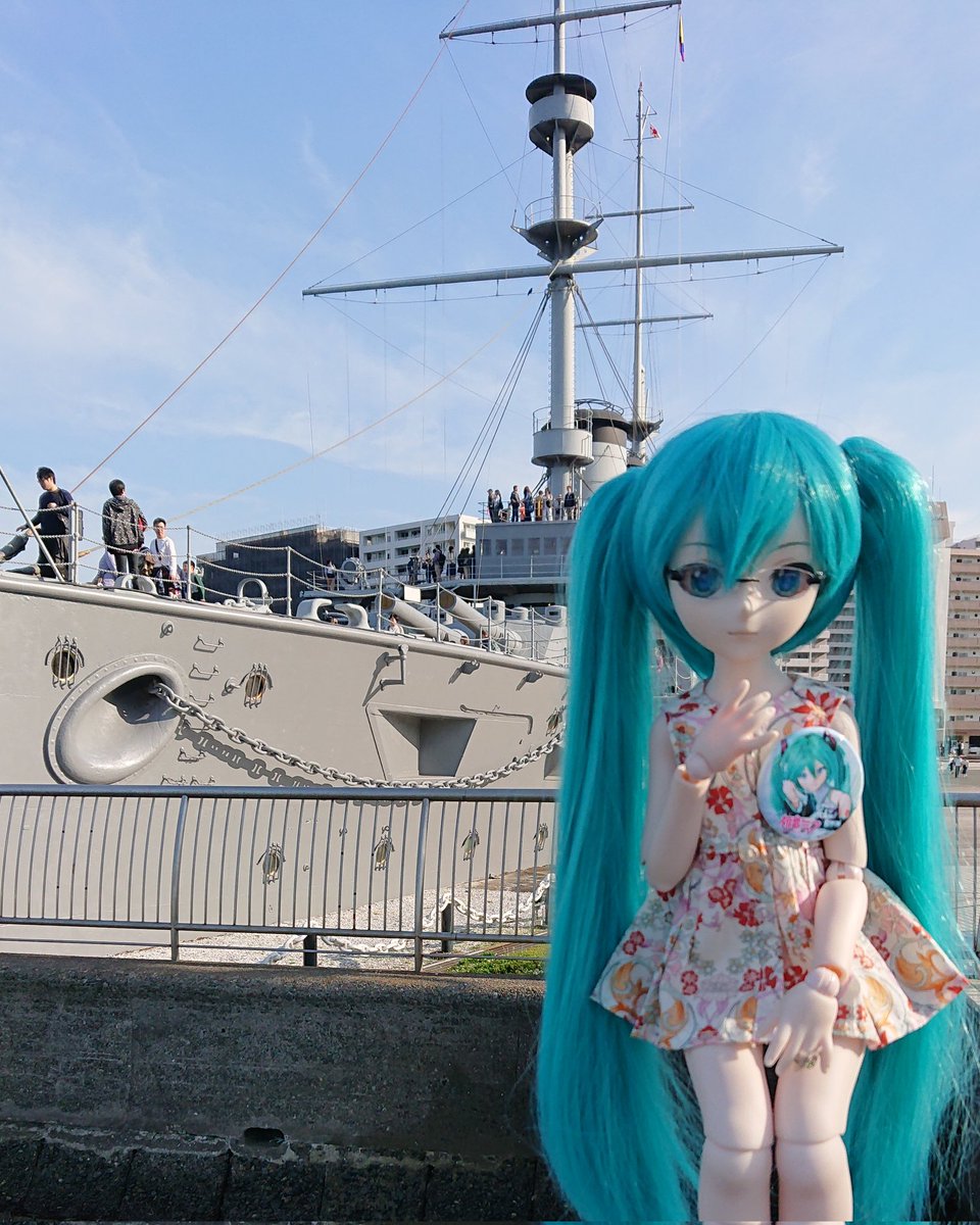 #深夜の初音ミク撮影60分一本勝負 【ふね】【フライング】【過去】 ミクさんと戦艦三笠🚢(^。^;) 記念艦だけど、いちおう船だよなσ(^_^;) いつか、ミクさんと広島の呉市の戦艦大和を見に行きたいなぁ(*´ω`*)💕 #うちのこに癒され24時間 #DD初音ミク #戦艦三笠 #うちのこかわいい