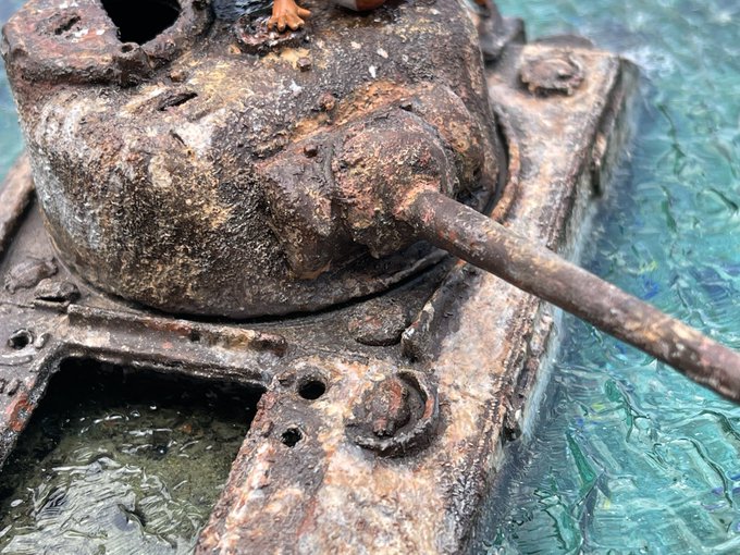 #アーマーモデリング #戦車は鉄である 今月号に作例として掲載させていただきました! 画像のような鋳造・被弾跡の制作方法を紹介しております。作品制作の参考にしていただけると幸いです。 また、専門家による「鉄」そのものの解説は必見です! アーマーモデリング今月号もおすすめです!