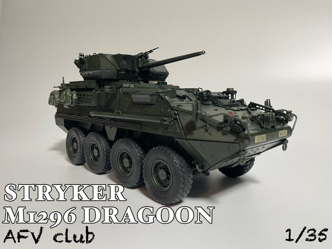 #プラモデル好きと繋がりたい #今月作ったプラモ晒そうぜ #プラモデル #戦車模型 #おいでよ戦車模型 #tank #scalemodel AFVクラブの1/35 ストライカー M1296ドラグーンです。 装輪車だと甘く見てたら、とんでもないパーツ量でした😅 配備直後ということでウェザリングは最小限です。