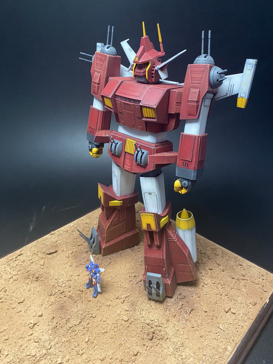 アイアンギアー、ベースとちっこいザブングルも完成して写真撮った。 オープニングのあのシーンも出来た!ギャリアがあれば後期OPも再現出来る😊 しかし、ちっこいザブングルの塗り分けは老眼の俺にはかなり厳しかった😰 #アイアンギアーWM計画 #戦闘メカザブングル
