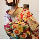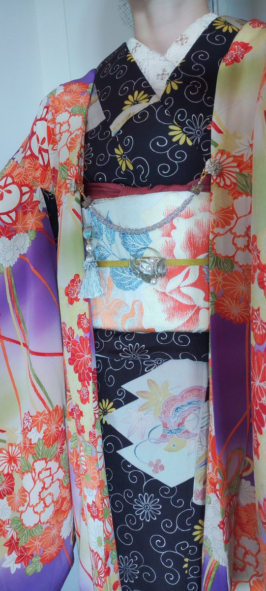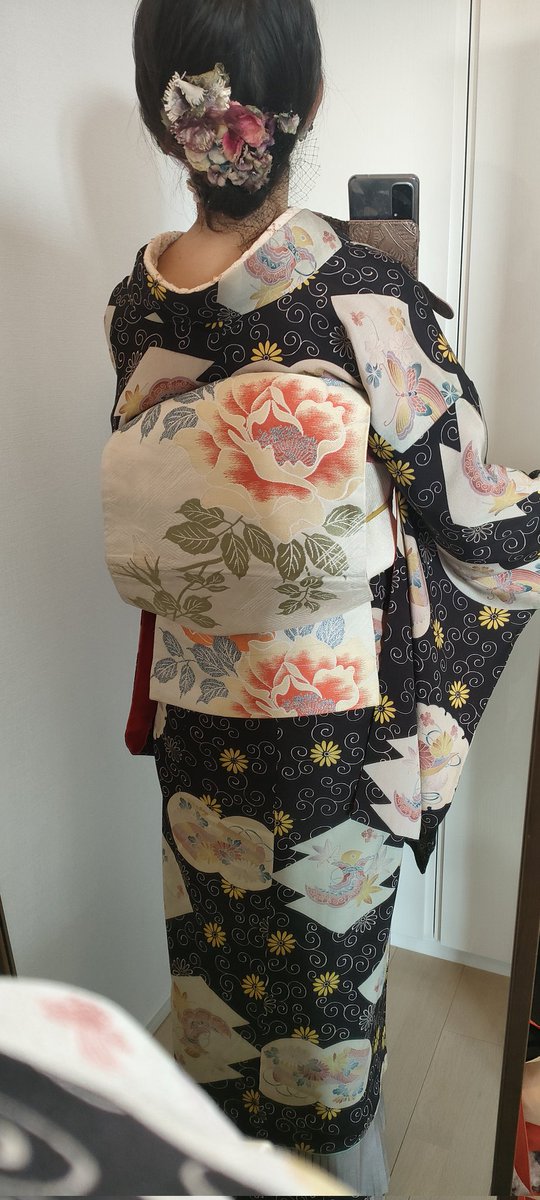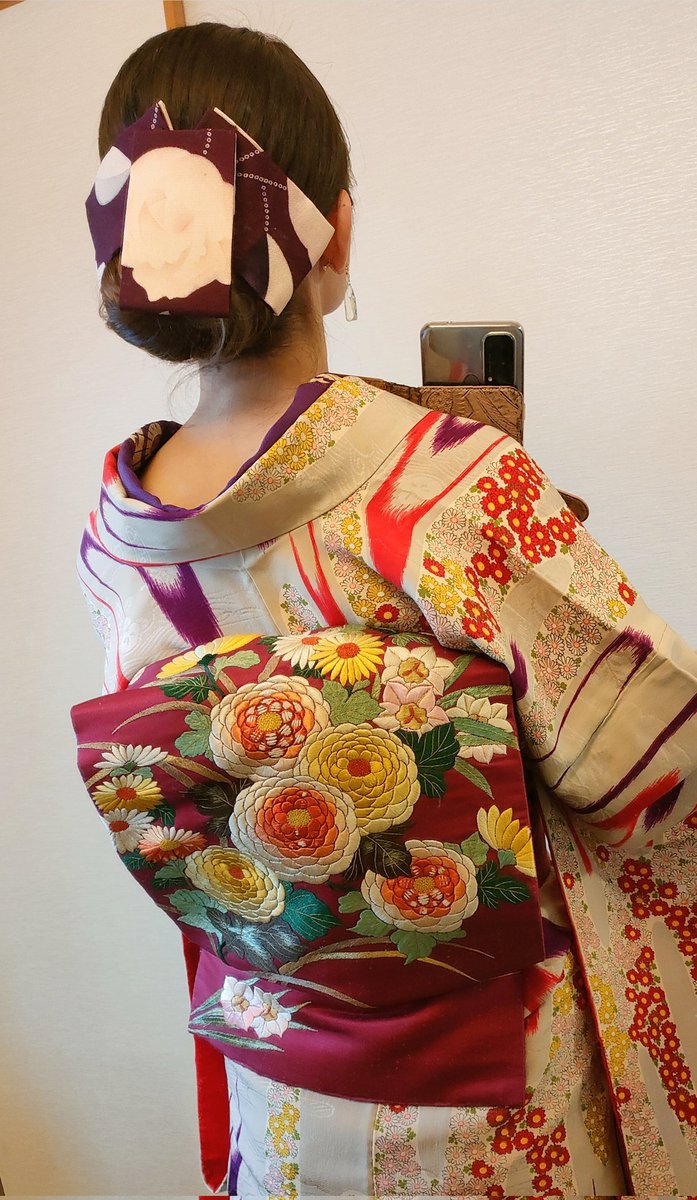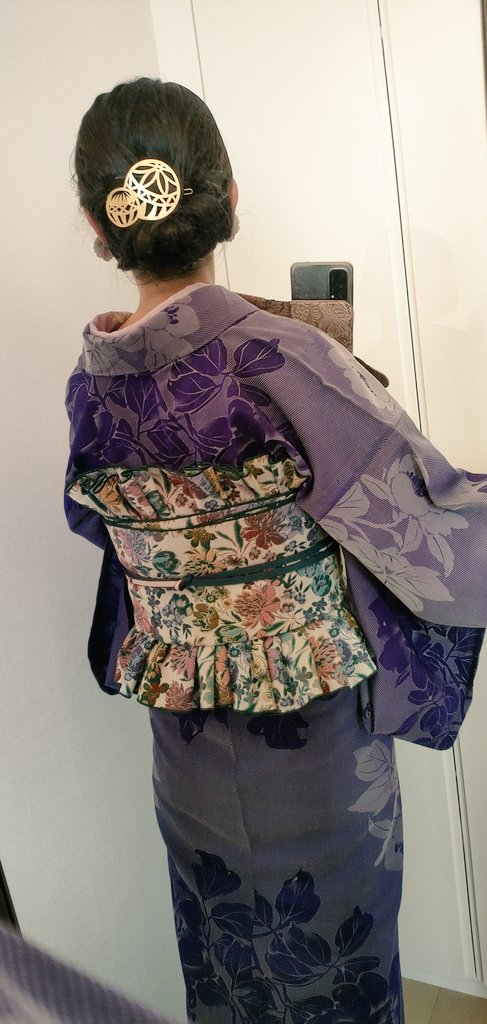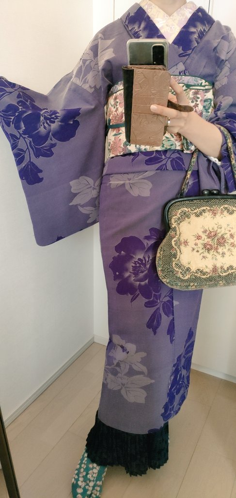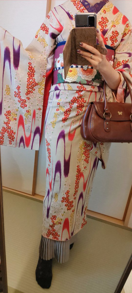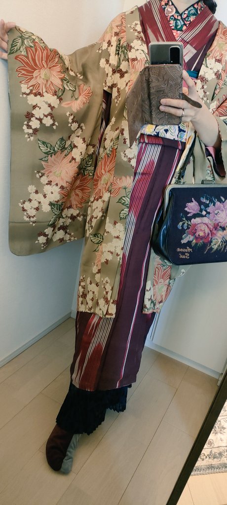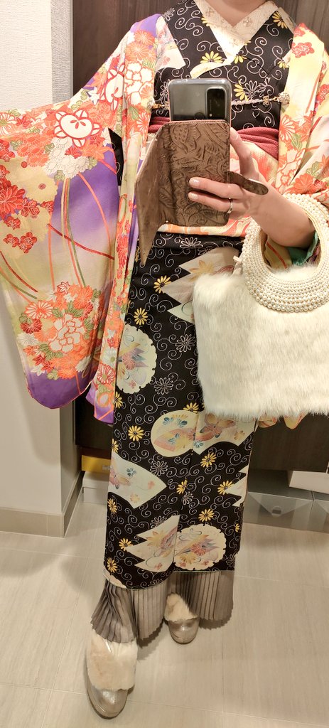 イルミネーション散策行く👘去年も着た着物だった(笑)小物類はキラキラ系 着物&羽織 #戻橋 さん 帯 #着物の越田 さん 半衿 #triputopia さんの #刺繍リボン 根付はろかさんからいただいたものもの❤スノードームみたいだよね☃ 足元は #ふわもこブーツ草履 #ホムシュヘム もキラキラ✨