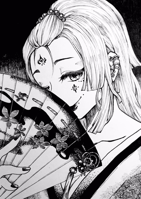 別の構図で描こうとしてたけど、いやそれ3時間でできる作業じゃねぇと自身にツッコミを入れて急遽こうなりました。今日は3時間切れだぜ、やったね! 7.扇 #inktober #inktober2021 #inktober2021day7 #fan #インクトーバー #インクトーバー2021 #扇 #イラスト #線画 #漫画 #落書き #和風 #姫髪