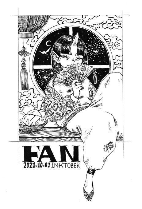 #inktober #inktober2021 #inktober21 #ink #fan #いんくとーばー2021 #扇 #イラストすきな人と繋がりたい #絵描きさんと繋がりたい #day7 7日目🍁扇 Inktober Day 7: Fan