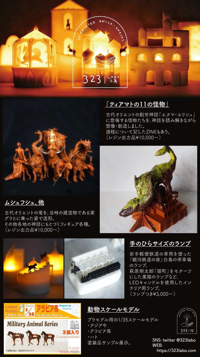 \まもなく!/ 🚩#ワンフェス2023冬 📅2023/2/12日 🗺幕張メッセ 国際展示場【ブース: 5-07-01 】 🎟 wonfes.jp/specialsite/ti… オリジナル: 🐉 #ティアマトの11の怪物 他、神話怪物 🪔 #手のひらサイズのランプ シリーズ スケール: 🐴動物スケールモデル(展示) #WF2023W #WF2023Wおしながき