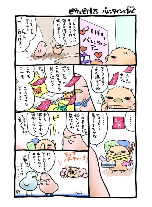 【ピウとピノ】25 ちょっと早いですが、HAPPY VALENTINE'S DAY🍫💕🥂✨ #バレンタインデー #手作りチョコ #漫画 #漫画がよめるハッシュタグ #漫画好きな人と繋がりたい #イラスト #バレンタインイラスト #イラスト好きな人と繋がりたい #オリジナル漫画 #鳥