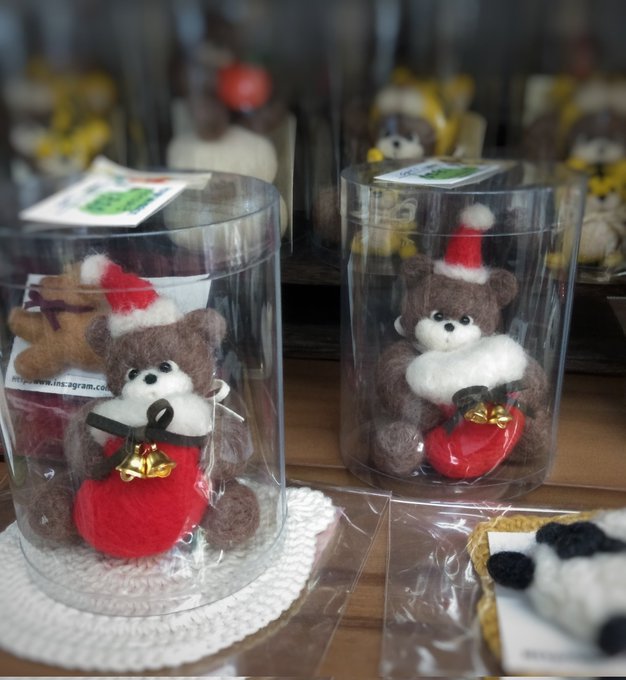 今日はご依頼品の納品に #手作り雑貨委託販売店アクロ さんへ💨 そしてハロウィンからクリスマスへと くまさん達も模様替えです🎄 #羊毛フェルト #くま好き #アクロふじみ野 #アクロ富士見市 #通販できます #お問い合わせはお気軽に