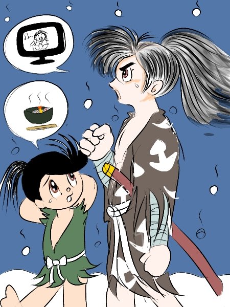 #手塚治虫おえかきワンドロ60分第27回 #手塚治虫おえかきワンドロ60分 お題3 大晦日 さて、彼らは何の話しをしているでしょう。 ヒント 俺も生きたい~ 人並みに~🎵(百鬼丸のうた)