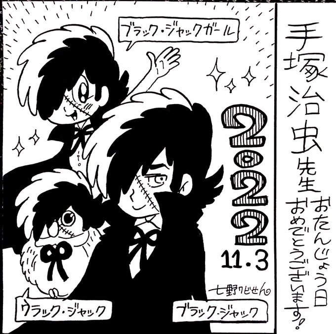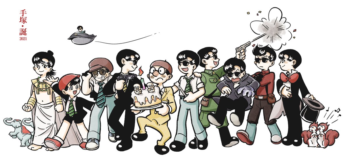 #手塚治虫生誕祭 #手塚治虫生誕祭2021 #まんがの日 大遅刻ですが、手塚治虫先生お誕生日おめでとうの絵。手塚先生、沢山の素晴らしき作品とキャラクター達をありがとうございます! 各キャラの衣装交換! キャラクターの選出は完全に趣味で衣装交換先はあみだくじ。