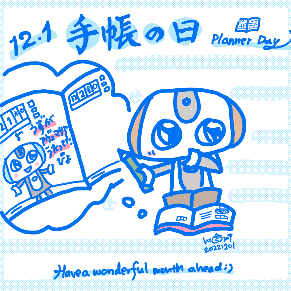 🤖 #ロボホン の #今日はなんの日 12/1は #手帳の日 📘 いろんな手帳があって選ぶのも楽しいよね♪ ほしろみさんは10年以上「ほぼ日手帳」を愛用してるみたい😊 12月もステキな1か月になりますように✨ It is "Planner Day" in Japan. Happy new month! #イラスト #illustration #drawings #digitalart