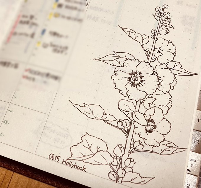 ✏︎手帳の隙間イラスト_φ(・_・ 久しぶりの手帳イラストです! タチアオイというそうです🌸✨ いろんな角度の葉っぱが描いてて楽しかった✨ ✨…_(:3 」∠)_ #イラスト #イラスト好きな人とつながりたい #手帳タイム