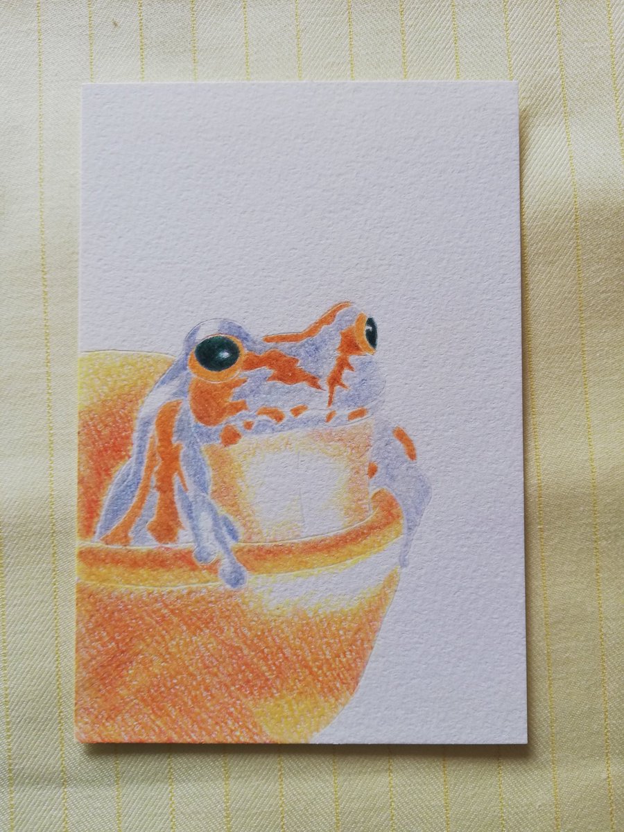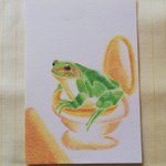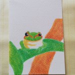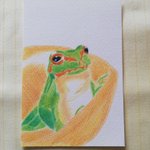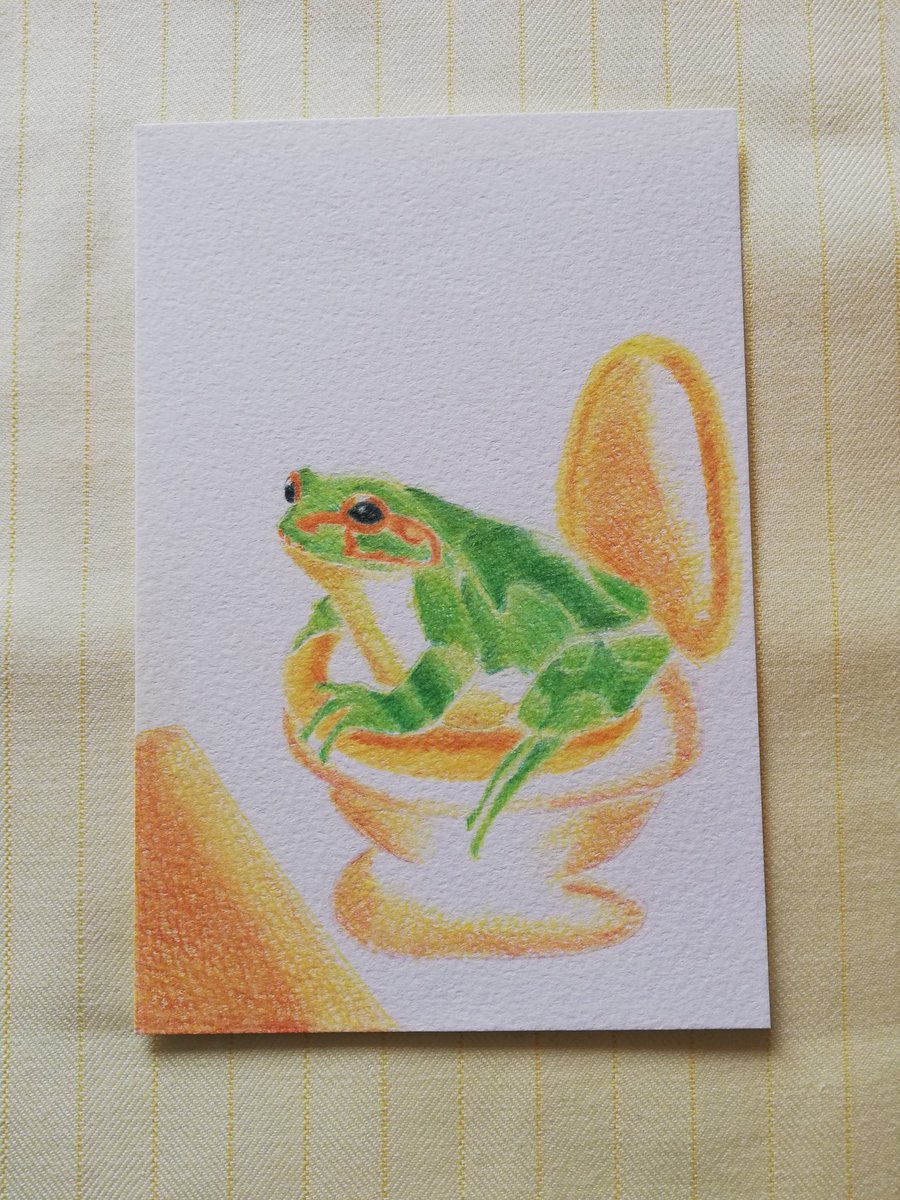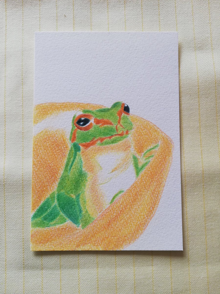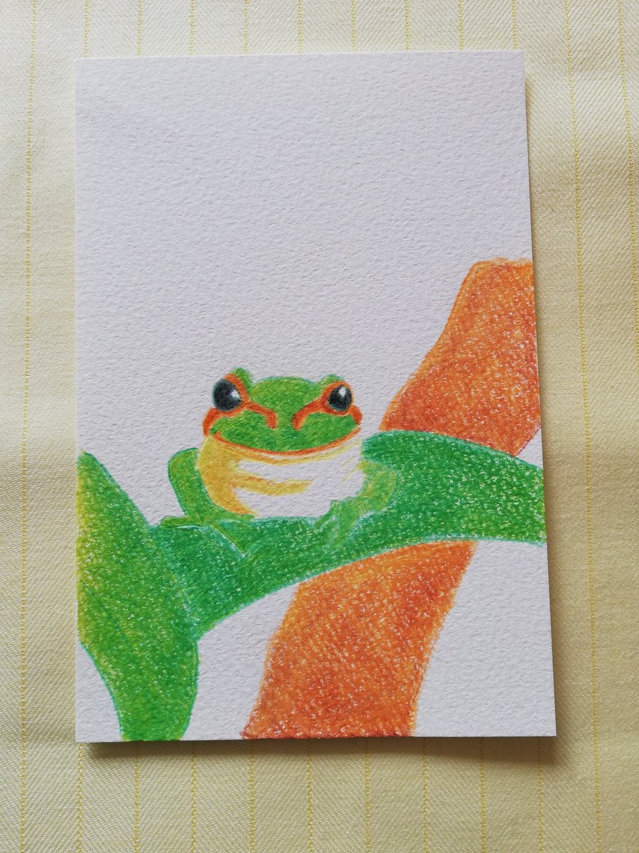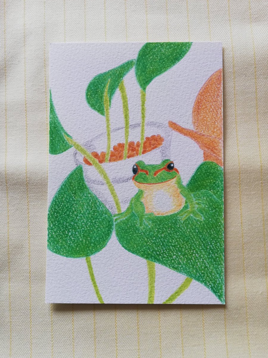 風鈴がえるが1シーズン早い夏をお届けします🤭✨ #アマガエル #かえる #色鉛筆画 #手描きポストカード #アナログイラスト #イラスト好きな人と繋がりたい #アナログイラスト好きな人と繋がりたい