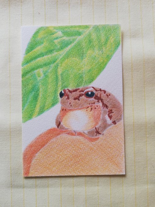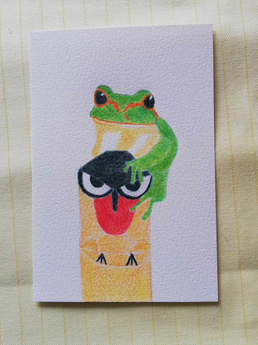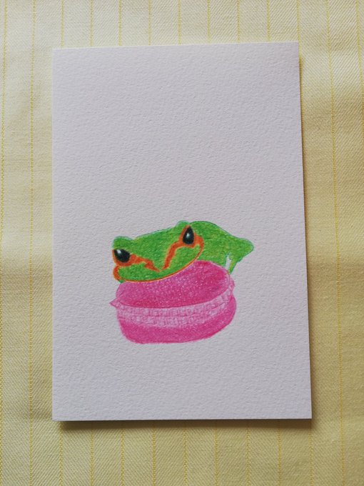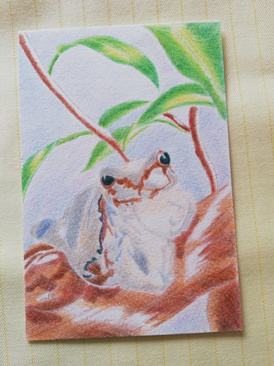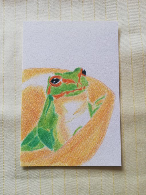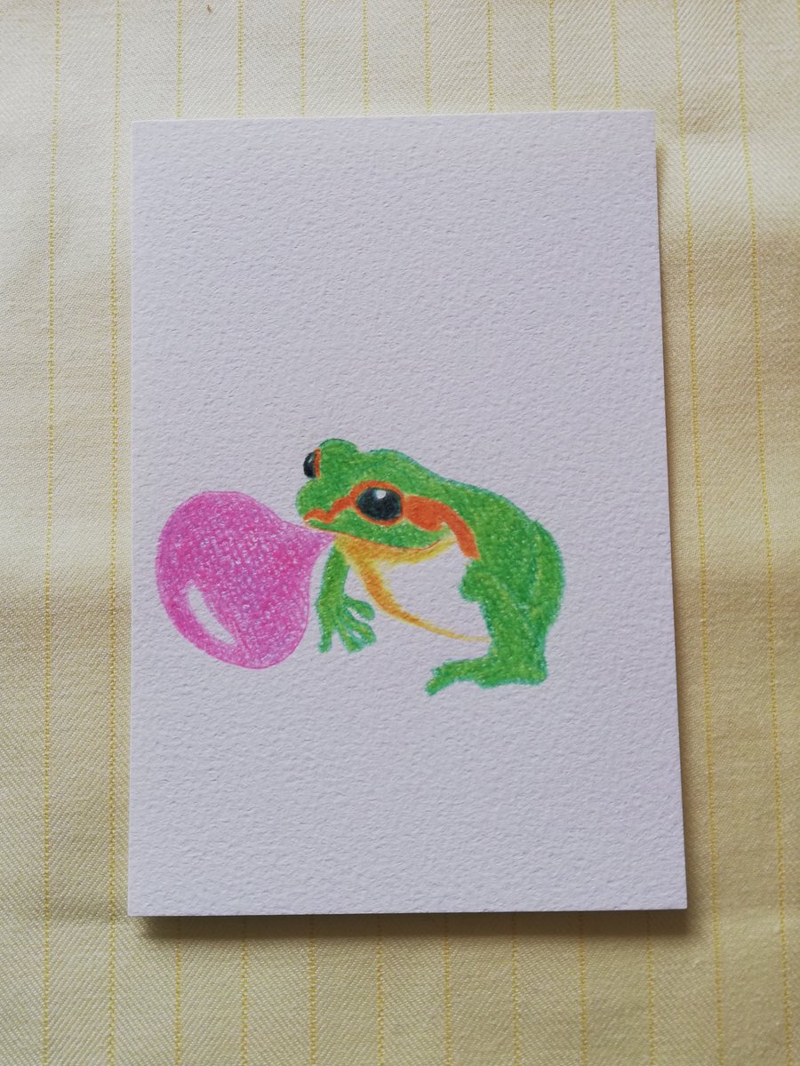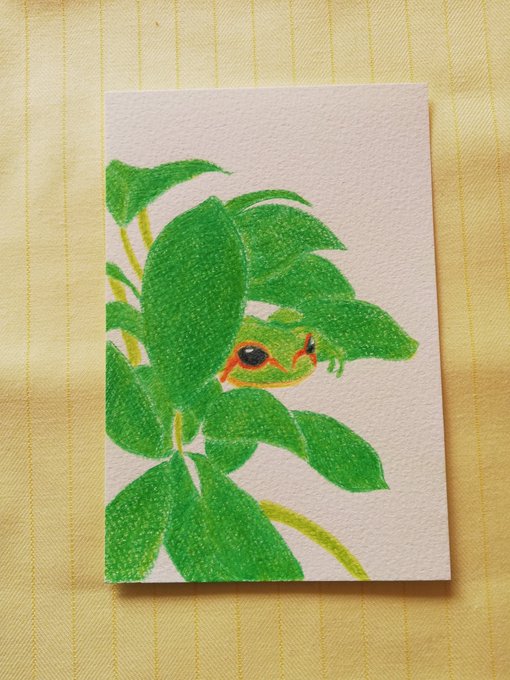 風鈴がえるが1シーズン早い夏をお届けします🤭✨ #アマガエル #かえる #色鉛筆画 #手描きポストカード #アナログイラスト #イラスト好きな人と繋がりたい #アナログイラスト好きな人と繋がりたい