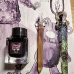 明るい紫に写ってるけど 4枚目のが一番近い色かな 深みがあってこっくりした紫 お迎え出来てよかったぁ #インク沼 #tonoandlims #とのりむ #黒蝶の涙 #ガラスペン #HASE硝子工房 #神戸派計画 #グラフィーロ #一本のインクで絵を描くシリーズ #illustration #手書き文字 #ハンドレタリング