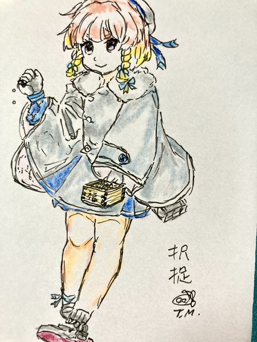 #艦これ版深夜の真剣お絵描き60分一本勝負 #艦これ版真剣お絵描き60分一本勝負_20230129 #択捉 寒いので、温かい格好になってもらいました。 綿入りはんてんに、タイツ。 なお、だいぶ遅刻しました。