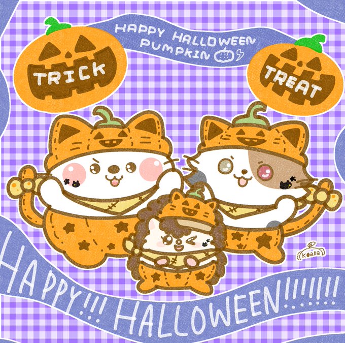 ハロウィンイラストPart6☠🎃 あおばコちゃん、こばコちゃん、 あかばコちゃん、ささおくんとコラボ! キッケル&ラーナもノリノリです🐸✨ ハロウィンまであと6日😍 #抹茶こあらの勝手にコラボ絵 #ハロウィンイラスト #むぎゅまるズ #ハロウィン #イラスト #ゆるい絵 #イラスト好きさんと繋がりたい