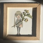 我が家の玄関。おかんからもらった押し花作品が仲間入りしました✨ ちょっとごっちゃり…😅アパートは家具を増やさないようにしているので、飾る場所が限られてきます💦 #アートで暮らしを彩りたい #押し花 #色鉛筆画